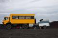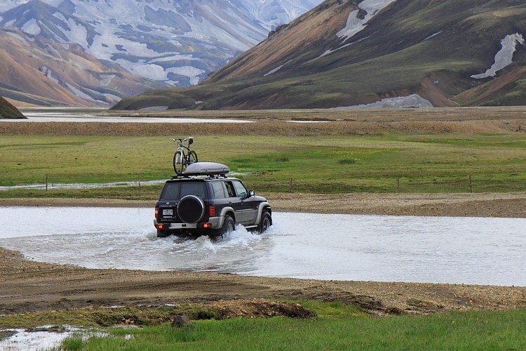 Travelling in Iceland The information on this website comes from a guided tour as well as from individually planned trips. Guided bustours are suitable for travellers being the first time in Iceland to learn something about the country and its points of interest. Iceland can be travelled on serveral ways such as on feet, by bicycle. by camper or simply by car. Parts of the ways can also be done on horseback or by ship or boot. The Icelandic ring road is more than 1300 km long and follows mainly the coast around the island. Almost all parts of this road are paved and have one lane in each direction. This road and a lot more in flat regions are passable in normal passenger cars and plenty of the points of interest can be reached. There are also a lot of gravel roads apart from the main road that can be driven by two-wheel-driven cars. Most of the smaller bridges are single lane and made of wood and/or steel even on the ring road. The speed limit is 90 km/h on paved roads and 80 km/h on gravel roads. Even this speed can be too high for the roads ahead, so please slow down when changing from paved roads to gravel roads. When travelling mainly apart from the main roads it is more relaxing to use a four-wheel-drive vehicle, because the surface of the gravel roads is often very loose, especially along the sides of the roads. Highland roads require 4x4 cars with more ground clearance, such as jeeps. Those roads are marked with an "F" before the road number. Highland roads are open only during the summertime. They usually open in the beginning of June but also depending on weather conditions and other circumstances. Mud and snow can make the roads completely impassable even in summertime. For some mountain roads it is strongly advised that two or more cars travel together. You are also advised to use detailed maps and it is recommended to rent a GPS with your rental car, because GPS devices with maps of North America or Europe do generally not contain detailed maps of the Icelandic highlands. But they are suitable for travelling on main roads in Iceland. Many rivers in the highland have no bridges, and those bridged are usually only wide enough for one car at a time. Crossing rivers should be attempted only in four-wheel-drive vehicles, such as jeeps. Keep in mind that fords through glacial rivers keep changing. They usually have less water in the mornings. On warm summer days, the flow increases as the day progresses. Heavy rainfall often causes river water to rise, sometimes making them impassable even for large and modified vehicles. That makes it necessary to examine its velocity, depth and bottom by wading into it. Never ever drive into water deeper than the diameter of the wheels and always try to keep the engine running even if stuck. Underestimating the water power in rivers has caused fatalities in the past There are petrol stations in all bigger towns/cities and many smaller villages, but there are no filling stations in the highland except Hveravellir and Hrauneyjar on the way to Landmannalaugar. It is always a good idea, filling up the car before starting a longer tour even on the main roads to keep flexible. Keep this in mind if you plan driving in the highlands and take jerry cans for longer drives in the highlands. You should also keep in mind that journeys on highland roads and above all on mountain tracks take usually much longer and the cars need more fuel than expected. According to my expierence an average speed of around 30 km/h on highland roads is suitable for planning a trip. On really bad mountain tracks the speed can be at walking pace to prevent any damage to the car. Consider, the slower you drive the more you see.. Driving outside marked trails is prohibited and is subject to nature conservation law. Make sure that you have enough food and drinks as well as warm clothes for an emergency if you are forced to spend a night in the highlands. Note, this is just basic information. Make sure that you are well informed and equipped when driving in the Icelandic highland. The native language in Iceland is Icelandic, but English and Danish are very common. When you book a guided bustour at your local travel agency, they are normally guided in your native language. International groups are usually guided in English. Creditcards are largely accepted. Some smaller accommodations accept payment by cash only.